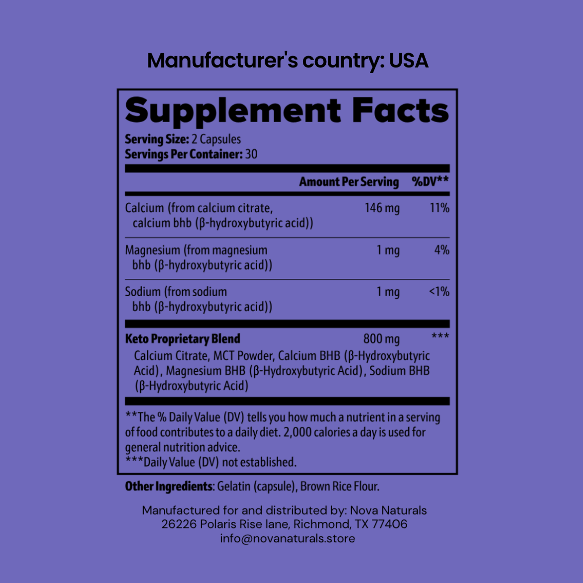 Ingredients: Calcium Citrate, MCT Powder, Calcium BHB (β-Hydroxybutyric Acid), Magnesium BHB (β-Hydroxybutyric Acid), Sodium BHB (β-Hydroxybutyric Acid)